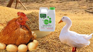 จากนั้นคนผสมให้เข้ากันดี หมักทิ้งไว้สับประมาณ 12 ช.ม. หรือหมักเช้าให้เป็ดไก่กินตอนเย็น หรือหมักไว้ตอนเย็นให้กินตอนเช้าให้หมดวันต่อวัน โดยกรให้ผสมรำและปลายข้าว โดยแกลบหมักเอาทั้งน้ำ 10 ส่วน รำ 3 ส่วน ปลายข้าวเล็กน้อย ข้าวเปลือกและเศษอาหารตามที่มี ให้เป็ดไก่กินตามปกติก็จะทำให้มีสุขภาพดีแข็งแรงไม่เป็นโรค